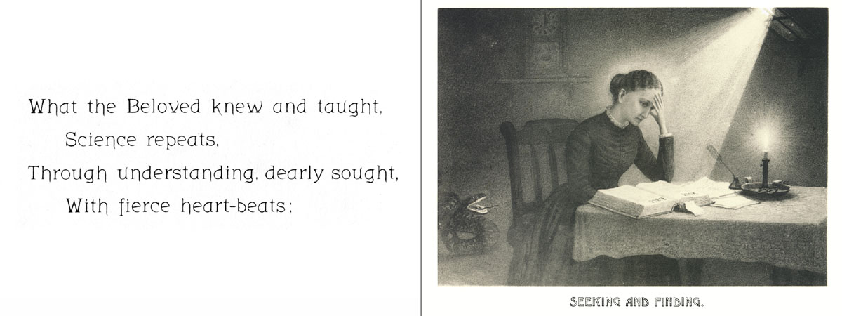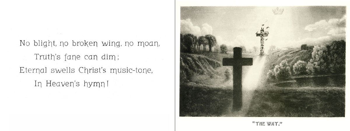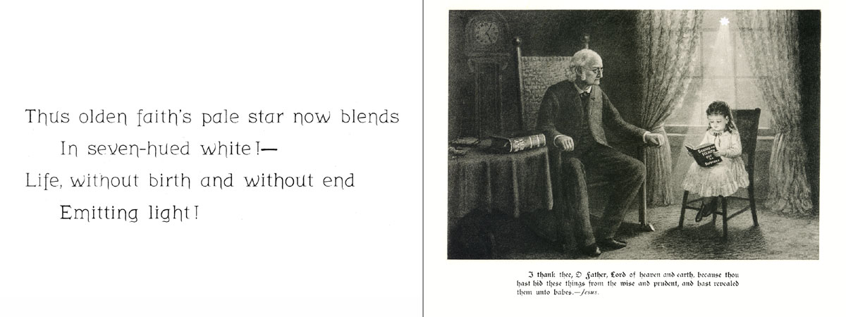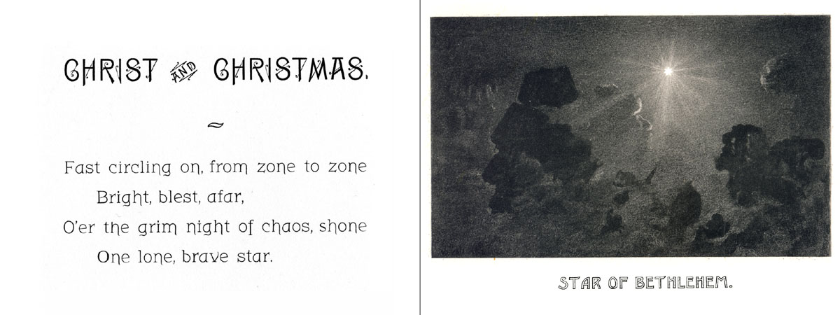 1. These pictures were scanned from the printed book and carefully retouched to remove scratches etc. from the 7th edtion, printed in 1906 under Mrs. Eddy's direction and approval. I have seen the original art that is archived at The Mary Baker Library in Boston and have attempted to reproduce the color variations as they exist today. Plate #1, STAR OF BETHLEHEM, as shown in this book was not available.